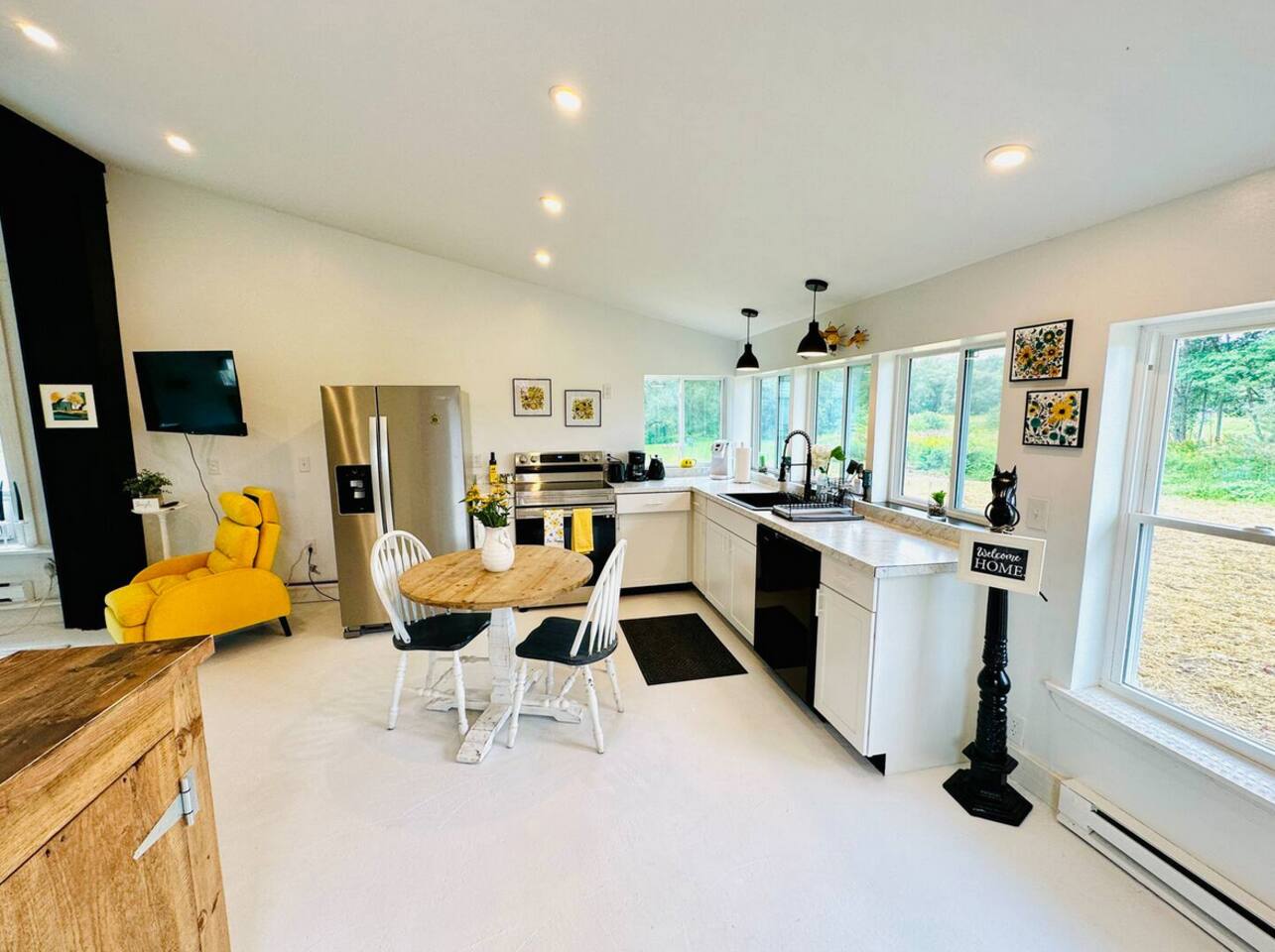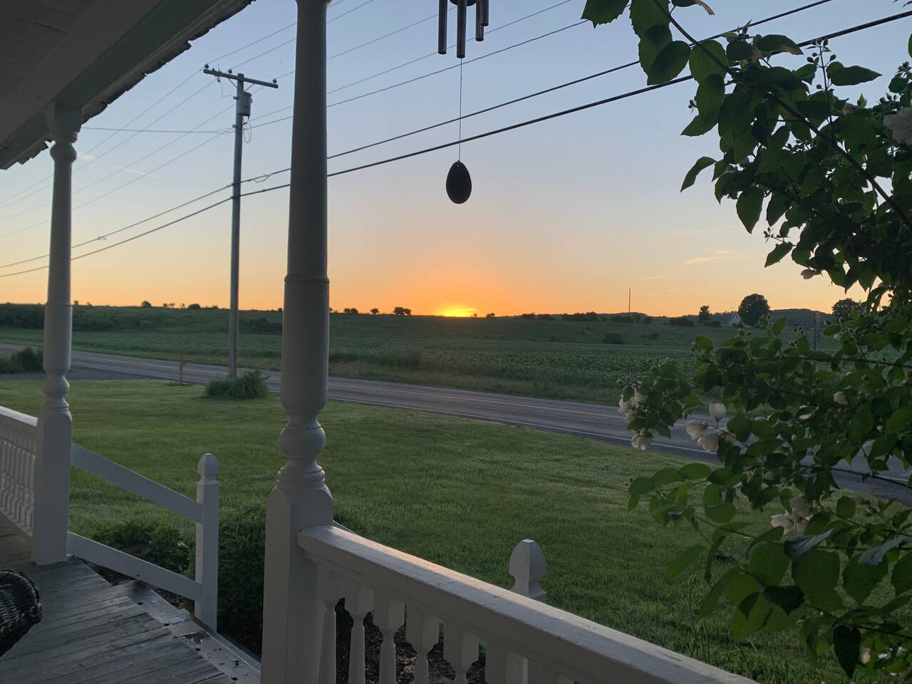 On one side of the Barnhouse, there's a charming barn and a vast field of corn and soy beans. Across the street, you'll find another cornfield. The neighborhood consists of just four houses around an intersection, and it's incredibly peaceful with great neighbors. It's the ideal place for a tranquil retreat.